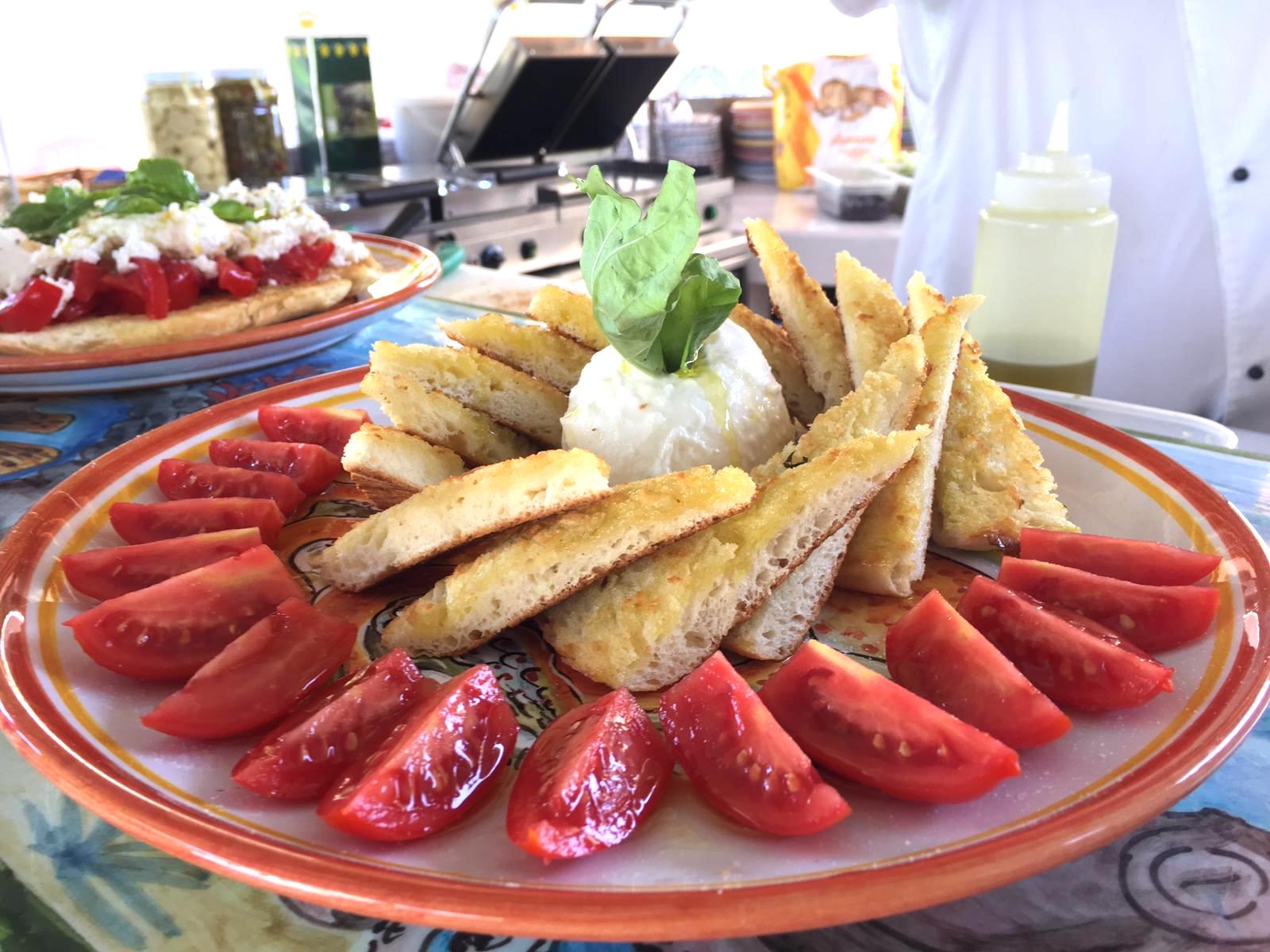 Piccadilly tomatoes, fresh mozzarella (milk), extra virgin olive oil, salt, fresh basil